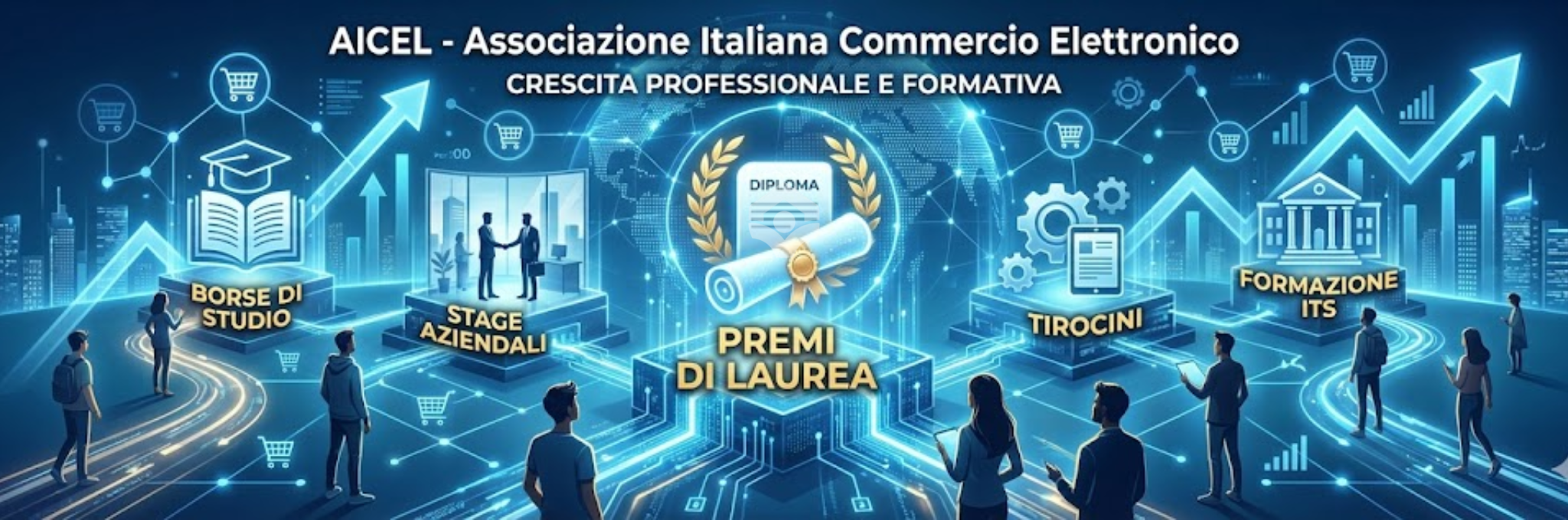 AICEL - Associazione Italiana Commercio Elettronico- intende promuovere e favorire la crescita professionale e formativa, favorendo l’esplorazione, l’individuazione e l’anticipazione delle tendenze del comparto eCommerce attraverso l’istituzione di Premi di Laurea , Borse di Studio, Stage Aziendali, TIrocini.